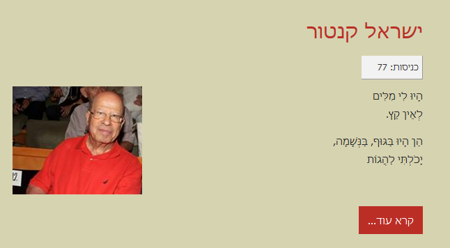 וככה למשל נראה פרצוף של משורר (ישראל קנטור כפי שאתם רואים) בתוך האתר של נילי דגן: